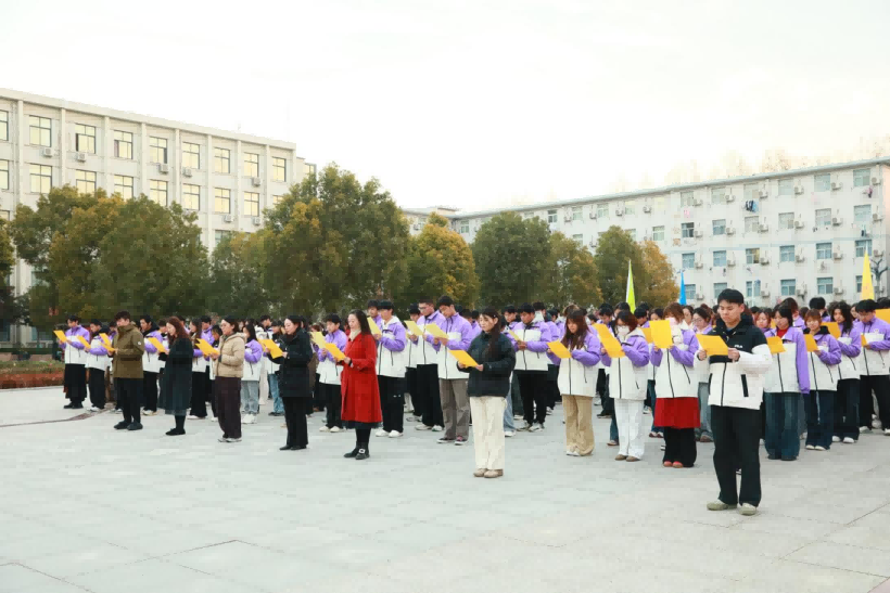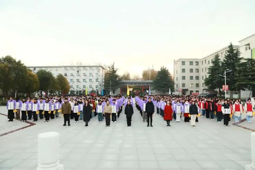 为深入学习贯彻习近平法治思想,推动宪法深入人心。2025年12月4日,是我国第十二个“国家宪法日”。我校在郑州、开封两地三校区举办“弘扬宪法精神,践行法治使命”国家宪法日升旗仪式暨“宪法晨读”活动。校团委书记刘亚娟、副书记李倩、副书记娄焕出席仪式,各二级学院(中心)团总支书记及师生代表1500余人参加仪式。