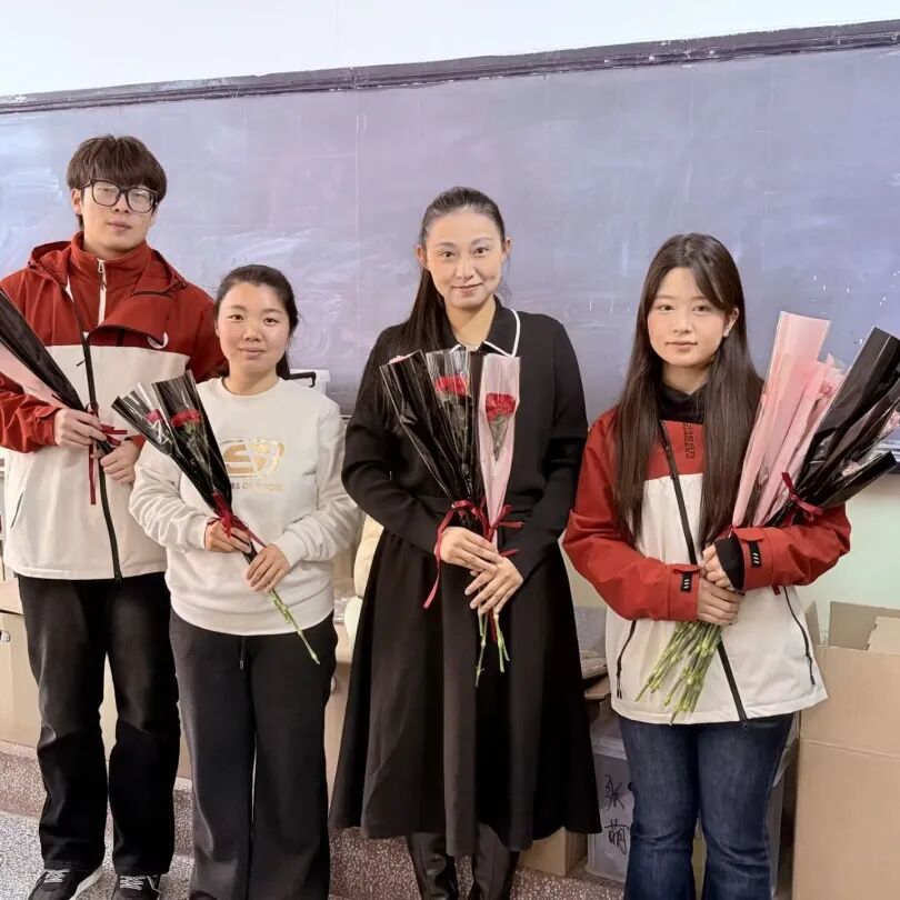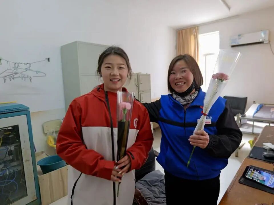 志愿者们带着鲜花与贺卡