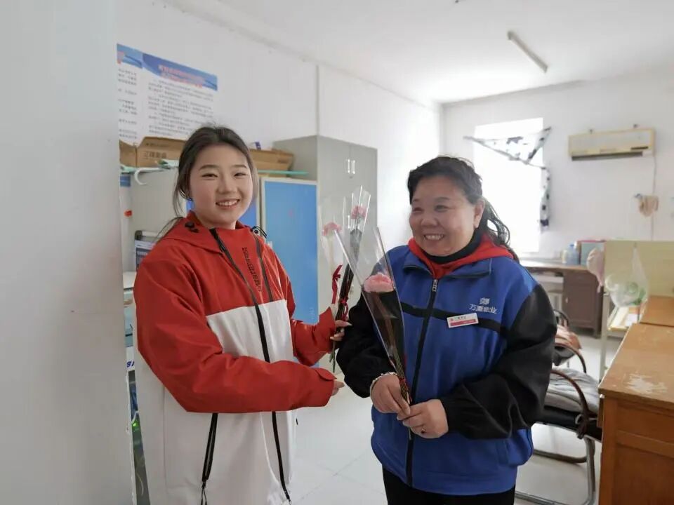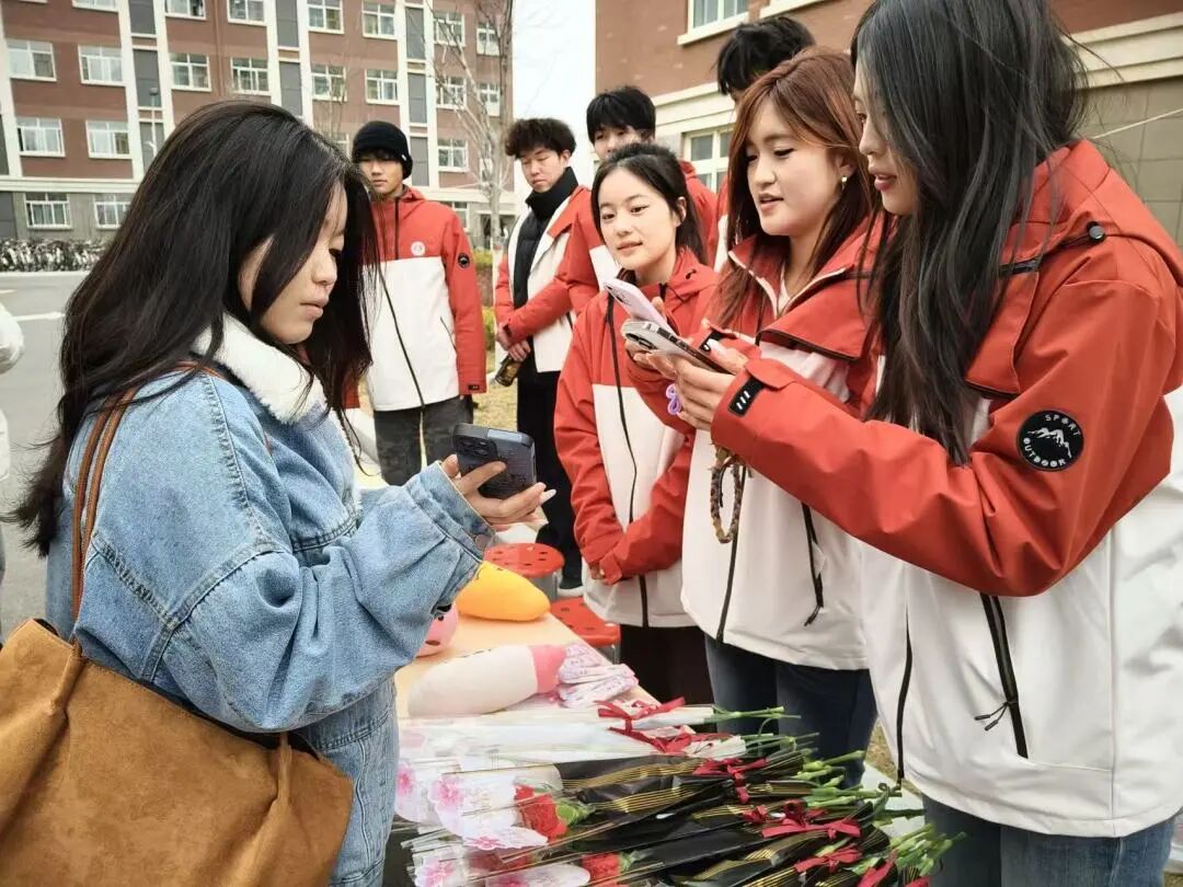 鲜花赠佳人,暖意满校园