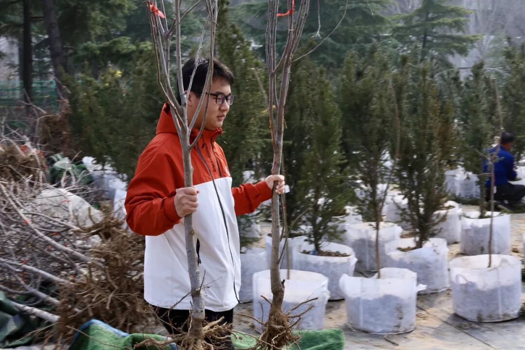 活动当天,志愿者们抵达植物园后,启动仪式一结束便迅速分组投入志愿工作。在植树区域,大家手持铁锹、锄头,分工协作、默契配合:扶苗、培土、踩实,每一个动作都认真细致,亲手为植物园栽下一棵棵充满希望的新苗。