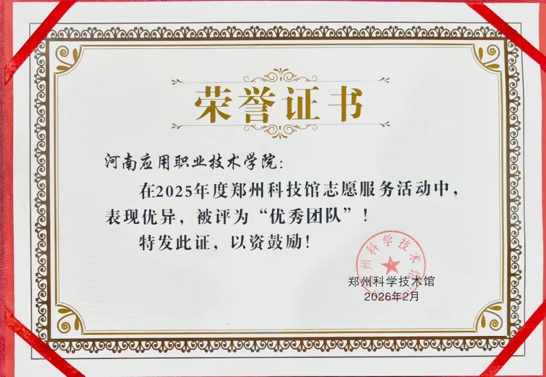 我校荣获2025年度郑州科技馆志愿服务“优秀团队”。
