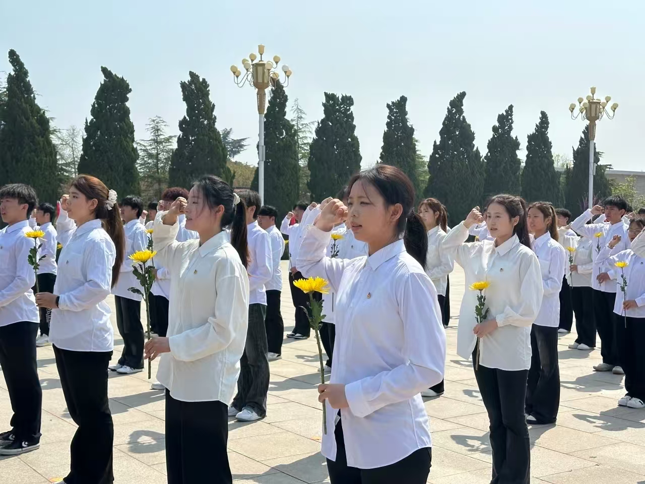 随后,全体学生面向鲜艳的团旗,高举右拳、庄严宣誓,重温入团誓词。铮铮誓言在陵园上空久久回荡,既是对革命先烈的告慰,更是新时代青年坚守初心、勇毅前行的庄严承诺。