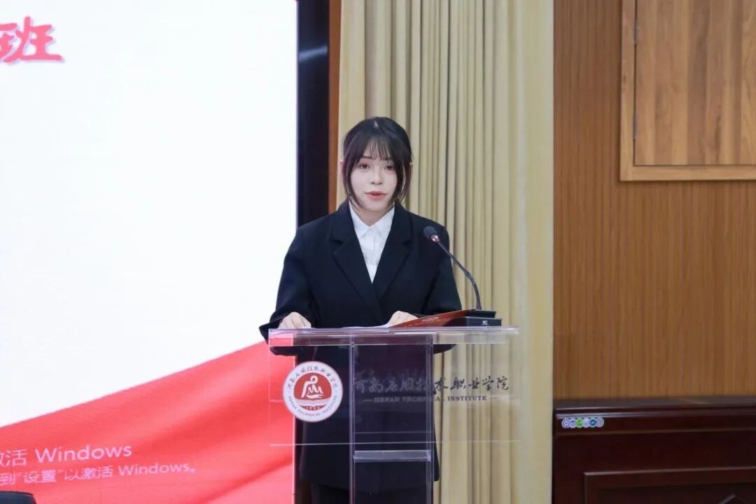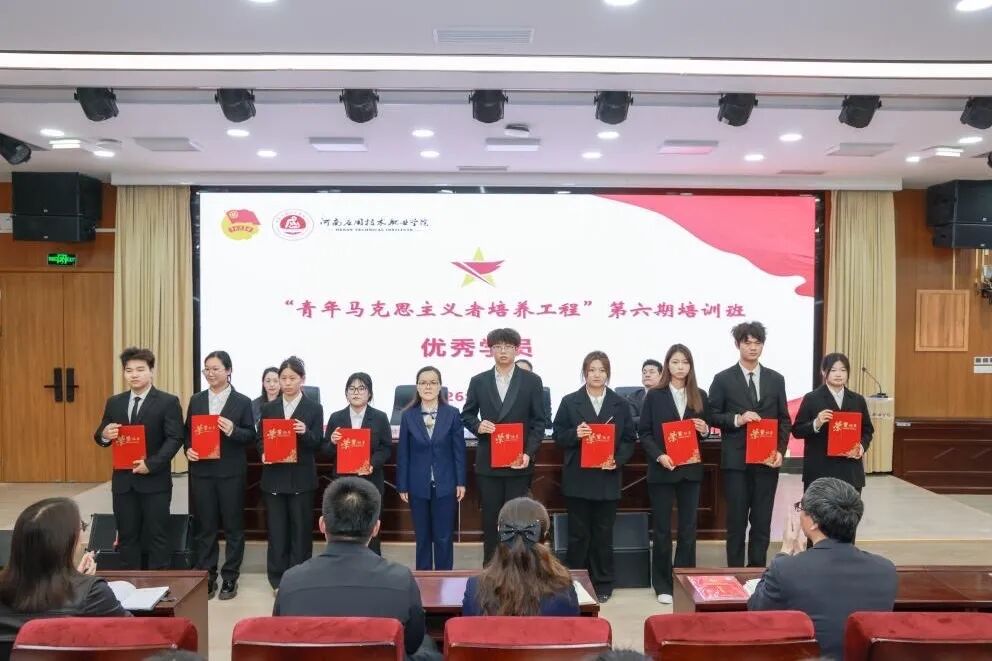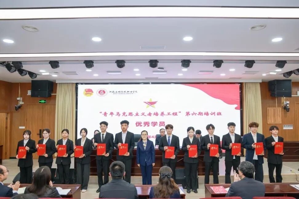 马克思主义学院党总支书记钟建宣读《关于表彰河南应用技术职业学院第六期“青年马克思主义者培养工程”培训班“优秀学员”的决定》。