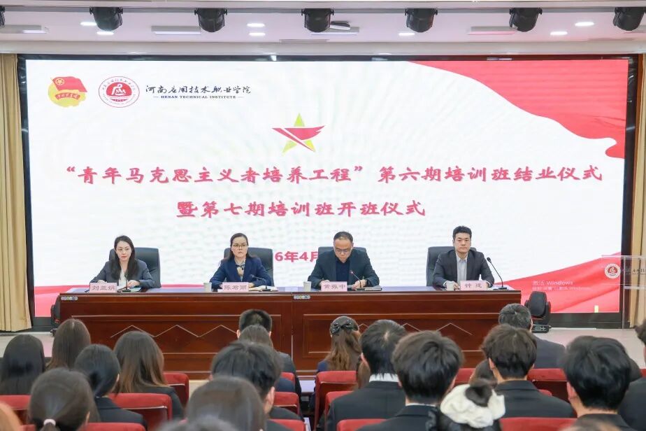 4月7日下午,我校“青年马克思主义者培养工程”第六期培训班结业暨第七期培训班开班仪式,在郑州校区教学楼C二楼报告厅顺利举行。校党委副书记、工会主席陈君丽,副校长黄振中出席仪式,相关部门负责人,各二级学院(中心)党总支副书记、团总支书记、全体辅导教师、第六期优秀学员代表和第七期110名“青马工程”学员参加活动。仪式由黄振中主持。